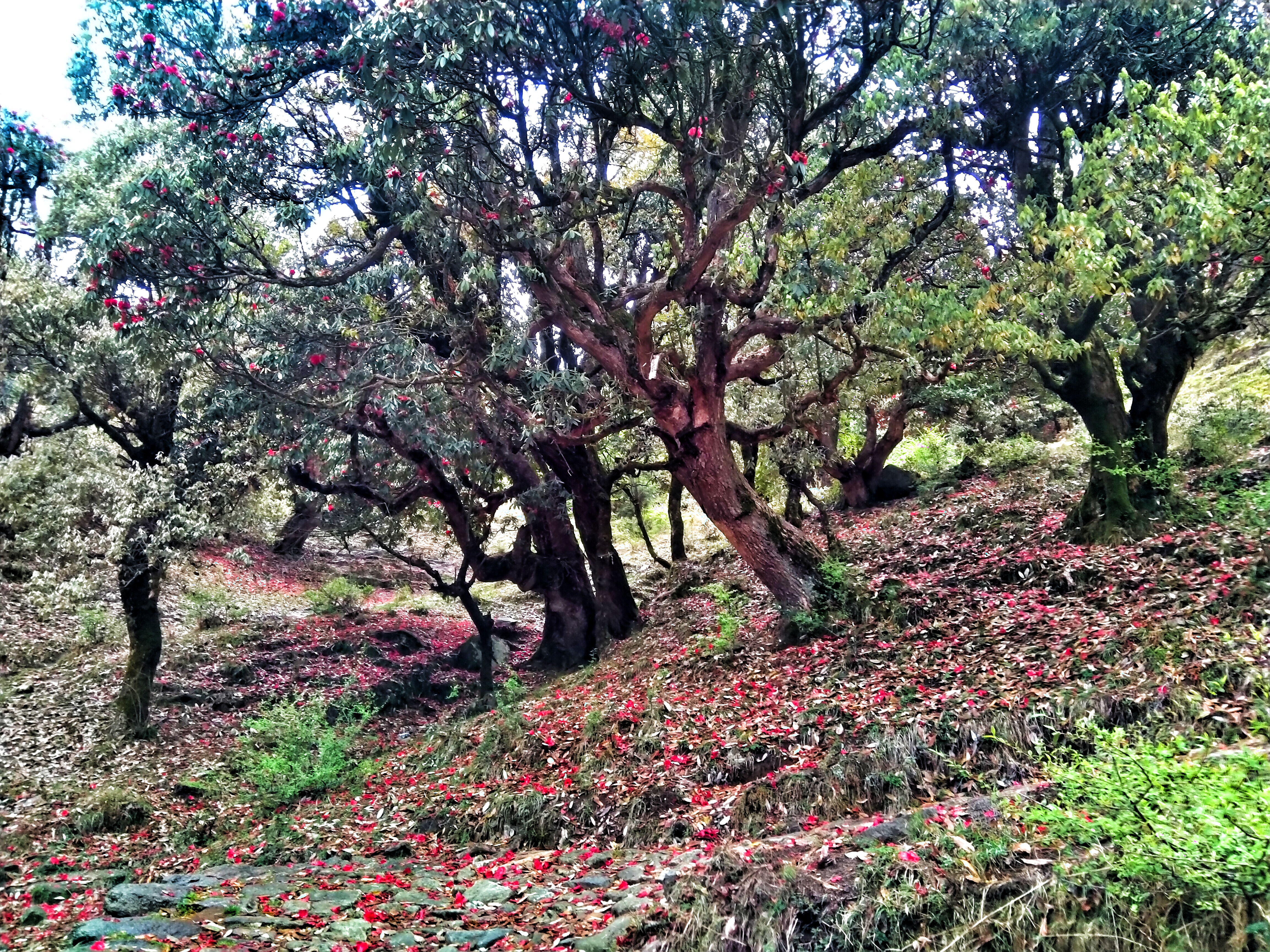 To begin trek to Chopta, Deoriatal trek starts with forest trails and some steep climb. You will find colorful flowers covered on trails in spring season.